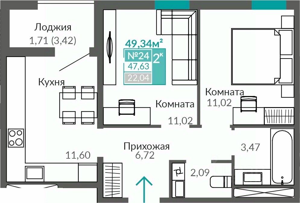 34 м² · Этаж 5 из 9