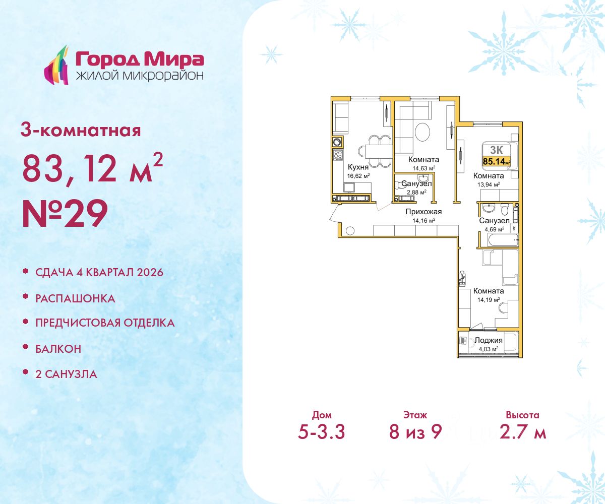 83 м² · Этаж 8 из 9