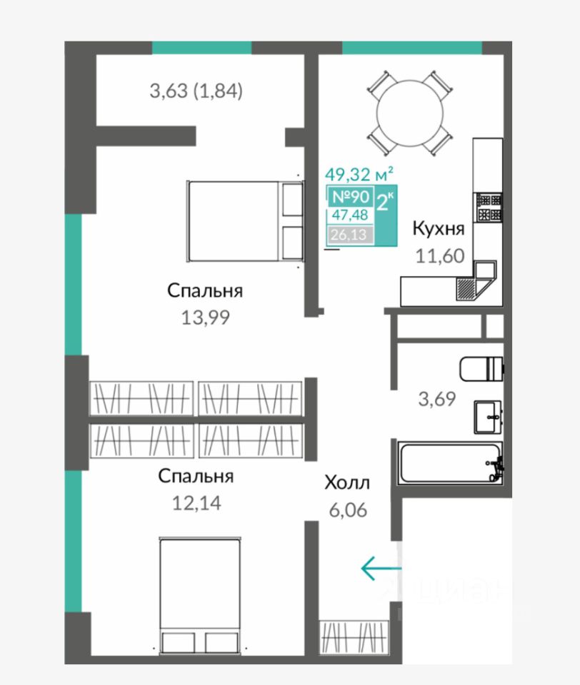 47 м² · Этаж 4 из 9