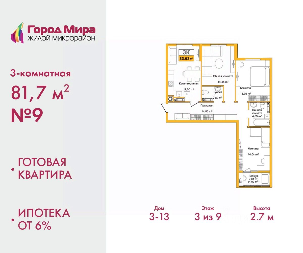 Трехкомнатная квартира от застройщика с предчистовой отделкой в ЖМ ''Город Мира'' на 3 этаже. Общая площадь: 81.7 кв.м., жилая: 42.28 кв.м., площадь просторной кухни-столовой: 17 кв.м. Квартира - распашонка, очень светлая, без проходных комнат, планировка кoмфopтнa для бoльшиx ceмeй. В квартире один балкон, один совмещенный и один раздельный санузел. Высота потолков 2.7 м. Жилой комплекс ''Город Мира'' комфорт и гармония в современном формате. ''Город Мира'' это масштабный жилой комплекс, созданный для тех, кто ценит комфорт, безопасность и гармонию с природой. Здесь продумана каждая деталь от удобной инфраструктуры до эргономичных планировок квартир. В 2024 году микрорайон ''Город Мира'' победил в номинации ''Лучший экологический проект года в сфере строительства'' по версии премии Crimea Urban Awards. Ключевые преимущества комплекса: - удачное расположение зеленый район с благоприятным микроклиматом - продуманное зонирование жилые кварталы, зоны отдыха и коммерческие объекты - комфорт-класс высокое качество строительства и современные инженерные решения Инфраструктура ''Города Мира'': Образование и досуг: - 2 детских сада (по 260 мест каждый) - планируется строительство общеобразовательной школы - детские и спортивные площадки в каждом дворе - беседки для отдыха, зоны для выгула собак Ритейл и сервис: - магазины, аптеки, медицинские центры - фитнес-клубы, салоны красоты - детские развивающие центры Парковки: - гостевые парковки - наземные и подземные паркинги Квартиры с продуманным комфортом: - просторные планировки с кладовыми и колясочными - лоджии с остеклением - автономное отопление (по 23 дому: индивидуальное отопление) - выполнена стяжка пола (по 3, 4, 20, 21, 22 домам: выполненная стяжка пола и штукатурка стен) - Консьерж-сервис для дополнительного удобства Благоустройство территории: - ландшафтный дизайн с зонами отдыха - современные детские площадки - стильные холлы с дизайнерской отделкой - система видеонаблюдения для безопасности ''Город Мира'' это место, где созданы все условия для комфортной жизни. Выбирайте качество и продуманность в каждой детали! Квартира находится в корпусе 3_13. Дом монолитный, одноподъездный, высотой 9 этажей. На этаже 5 квартир. В подъезде 1 грузовой лифт. На сегодняшний день строительство завершено, дом сдан в 4 квартале 2022 года. Оформление сделки по договору купли-продажи. #zmZuZS