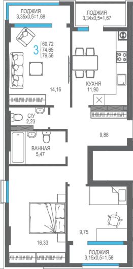 Продаётся 3-комнатная квартира в строящемся доме (Корпус 2), срок сдачи: I-кв. 2026, общей площадью 74.65 кв.м., на 2 этаже. Жилой комплекс ''На Фонтанке'' в городе Алушта на улице Багликова.