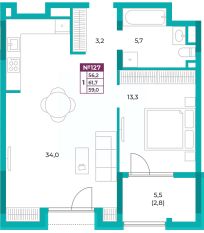 34 м2
