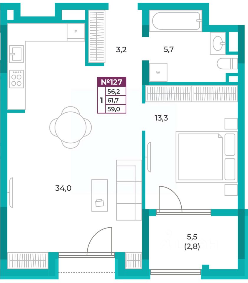 57 м² · Этаж 8 из 16
