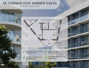 COSMOS STAY HIDDEN YALTA - это комплекс апартаментов из 5 корпусов для отдыха с собственной развитой инфраструктурой. Находится в Ялте у подножья горы Могаби на южном берегу Крыма, вблизи с живописным горно-лесным заповедником. Из апартаментов комплекса открываются завораживающие виды на горные вершины и Чёрное море. В шаговой доступности могабинские озера. Находится на подножии Ай-Петри, что позволяет комфортно добраться до горных склонов. До центра Ялты 10 минут на машине, как и до моря. Концепция апарт-комплекса предполагает круглогодичный комфортный отдых в формате retreat, с заботой о ментальном и физическом здоровье. Всё для Вашего восстановления и перезагрузки, для размеренной и комфортной жизни. Целебный морской воздух и благодатный климат. В комплексе создана атмосфера респектабельной среды для жизни: - собственная инфраструктура, - свой зеленый двор, - безопасность, - детские пространства, - собственная инфраструктура, - свой зеленый двор, - безопасность, - детские пространства, - лаунж-зоны, - будет присвоен статус 3 звезды и работать отельный оператор, - пространства для медитаций и занятий йогой, - ресторан, - индивидуальные келлеры для габаритного инвентаря, - всесезонный бассейн, Консьерж-сервис полного цикла обслуживания с опцией управления недвижимостью - разрешит любой возникающий вопрос. Строительство ведется при проектном финансировании СБЕРБАНКА, ФЗ-214. Продажа через эскроу-счет без комиссий. Завершение строительства - 3 квартал 2026 годаПередача ключей до 31.12.2026Ремонт и оснащение апартаментов: декабрь 2026-апрель 2027Запуск апарт-отеля в управление - июнь 2027