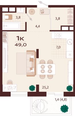Продаётся 1-комнатная квартира в строящемся доме (Корпус 5), срок сдачи: II-кв. 2027, общей площадью 49 кв.м., на 6 этаже. Жилой комплекс бизнес-класса ''РОЯЛТА'' от застройщика ''ГК ТОЧНО'' в городе Ялта Республики Крым на улице Спендиарова.