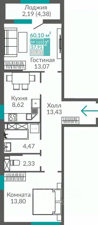 60 м² · Этаж 10 из 12