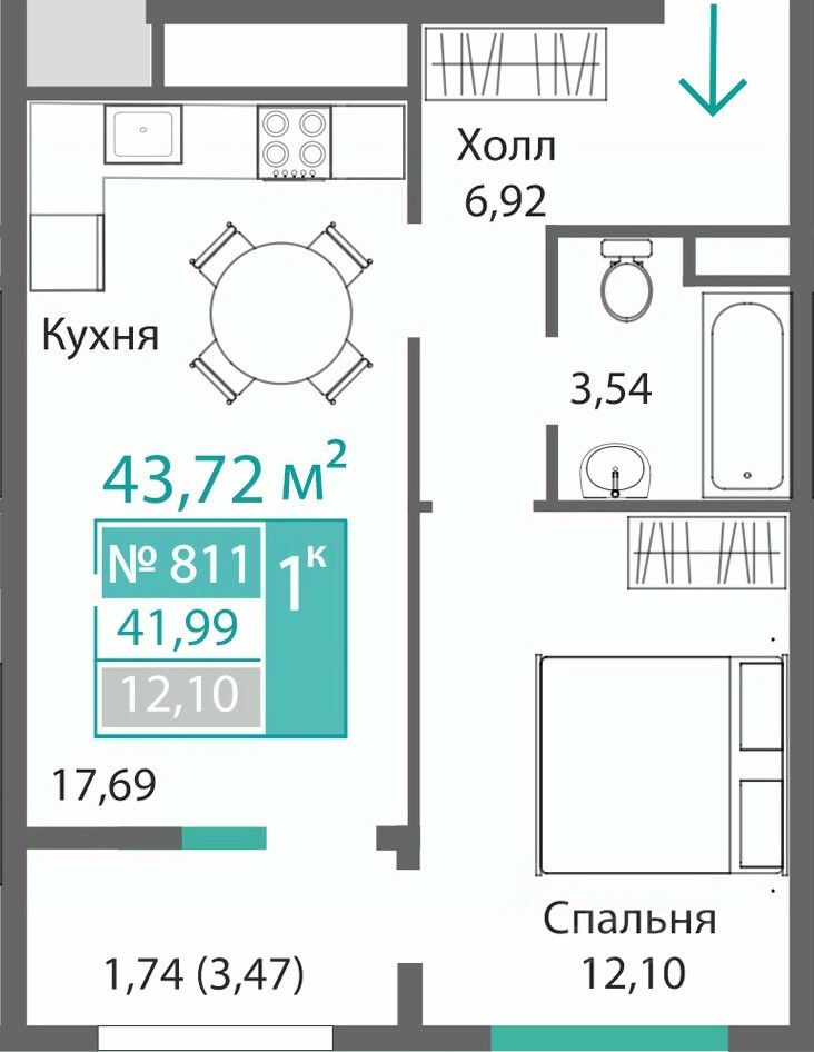 42 м² · Этаж 5 из 11
