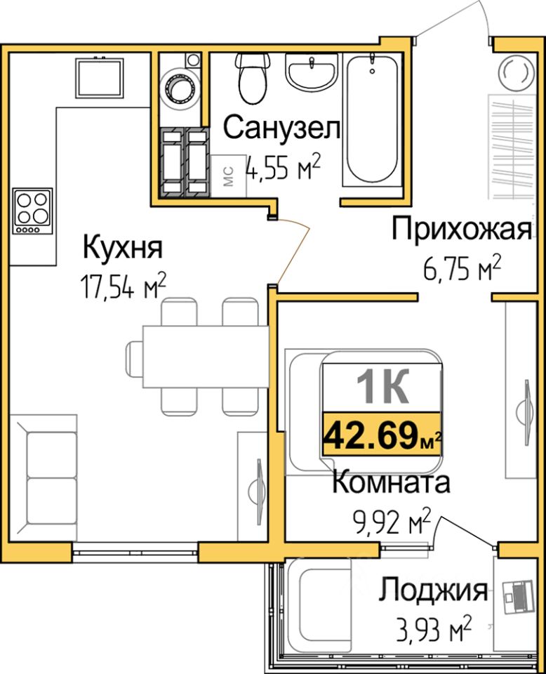34 м² · Этаж 4 из 9