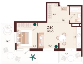 Продаётся 2-комнатная квартира в строящемся доме (Корпус 2), срок сдачи: II-кв. 2027, общей площадью 59.5 кв.м., на 7 этаже. Жилой комплекс бизнес-класса ''РОЯЛТА'' от застройщика ''ГК ТОЧНО'' в городе Ялта Республики Крым на улице Спендиарова.