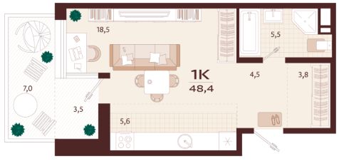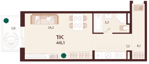 Продаётся 1-комнатная квартира в строящемся доме (Корпус 2), срок сдачи: II-кв. 2027, общей площадью 48.1 кв.м., на 8 этаже. Жилой комплекс бизнес-класса ''РОЯЛТА'' от застройщика ''ГК ТОЧНО'' в городе Ялта Республики Крым на улице Спендиарова.