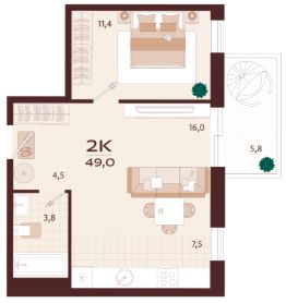 Продаётся 2-комнатная квартира в строящемся доме (Корпус 2), срок сдачи: II-кв. 2027, общей площадью 49 кв.м., на 7 этаже. Жилой комплекс бизнес-класса ''РОЯЛТА'' от застройщика ''ГК ТОЧНО'' в городе Ялта Республики Крым на улице Спендиарова.