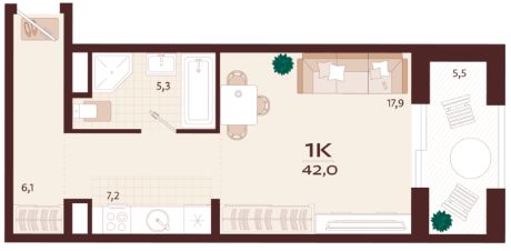 Продаётся 1-комнатная квартира в строящемся доме (Корпус 2), срок сдачи: II-кв. 2027, общей площадью 42 кв.м., на 8 этаже. Жилой комплекс бизнес-класса ''РОЯЛТА'' от застройщика ''ГК ТОЧНО'' в городе Ялта Республики Крым на улице Спендиарова.