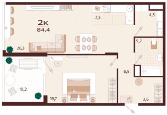 Продаётся 2-комнатная квартира в строящемся доме (Корпус 1), срок сдачи: II-кв. 2027, общей площадью 84.4 кв.м., на 9 этаже. Жилой комплекс бизнес-класса ''РОЯЛТА'' от застройщика ''ГК ТОЧНО'' в городе Ялта Республики Крым на улице Спендиарова.