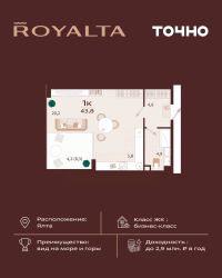Жилой комплекс ''РОЯЛТА'' включает 5 монолитно-кирпичных девятиэтажных зданий. Проект предлагает квартиры различных планировок: от однокомнатных до трехкомнатных с расширенными балконами и террасами до 13,4 м2. Территория будет благоустроена детскими игровыми и спортивными площадками, гостевой автостоянкой и озеленением, включая газоны, деревья и кустарники. Также появятся современные уличные тренажёры, СПА-комплекс и панорамный инфинити-бассейн. В шаговой доступности находятся центральная набережная Ялты, детские сады, школы, супермаркеты, торговые центры, Ялтинский медицинский колледж, автовокзал и Мордвиновский парк.