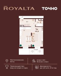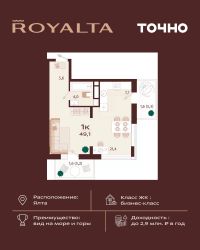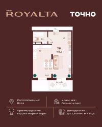 Жилой комплекс ''РОЯЛТА'' включает 5 монолитно-кирпичных девятиэтажных зданий. Проект предлагает квартиры различных планировок: от однокомнатных до трехкомнатных с расширенными балконами и террасами до 13,4 м2. Территория будет благоустроена детскими игровыми и спортивными площадками, гостевой автостоянкой и озеленением, включая газоны, деревья и кустарники. Также появятся современные уличные тренажёры, СПА-комплекс и панорамный инфинити-бассейн. В шаговой доступности находятся центральная набережная Ялты, детские сады, школы, супермаркеты, торговые центры, Ялтинский медицинский колледж, автовокзал и Мордвиновский парк.