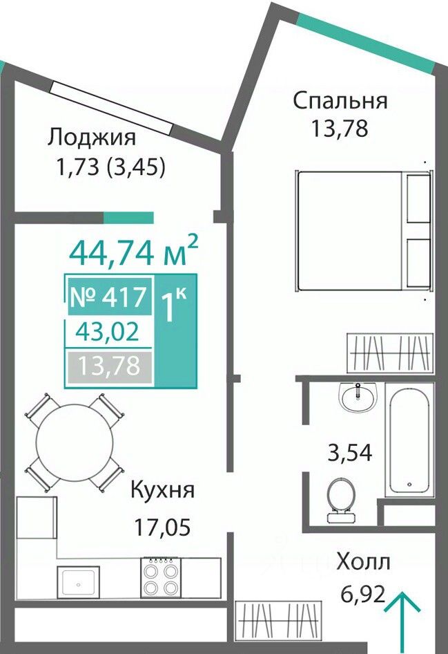 Продаётся 1-комнатная квартира в строящемся доме (Этап 4 (Секции А2, Ж2, Г4, В2, Г3)), срок сдачи: II-кв. 2028, общей площадью 43.02 кв.м., на 4 этаже. Новый жилой комплекс ''Подсолнух'' от застройщика ''Монолит'' расположен по адресу: Республика Крым, г. Симферополь, ул. Святителя Гурия