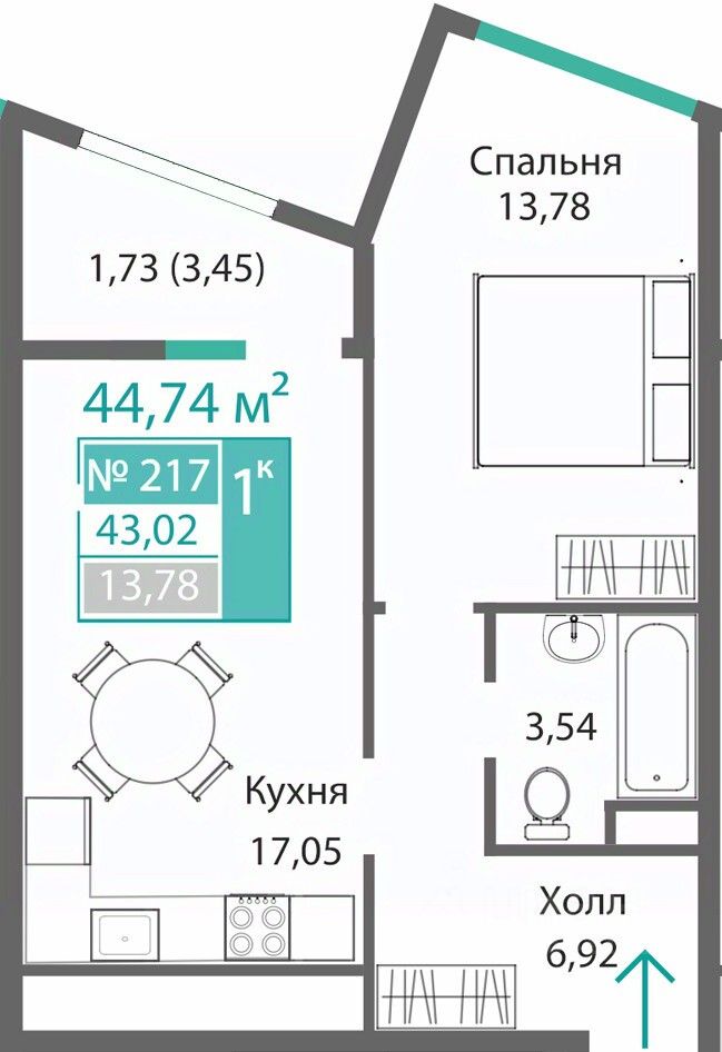 Продаётся 1-комнатная квартира в строящемся доме (Этап 1), срок сдачи: I-кв. 2028, общей площадью 43.02 кв.м., на 2 этаже. Новый жилой комплекс от ГК ''Монолит'' по адресу: Республика Крым, Симферополь, улица Святителя Гурия