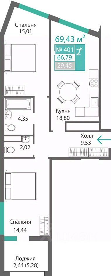 Продаётся 2-комнатная квартира в строящемся доме (Этап 4 (Секции А2, Ж2, Г4, В2, Г3)), срок сдачи: II-кв. 2028, общей площадью 66.79 кв.м., на 4 этаже. Новый жилой комплекс ''Подсолнух'' от застройщика ''Монолит'' расположен по адресу: Республика Крым, г. Симферополь, ул. Святителя Гурия