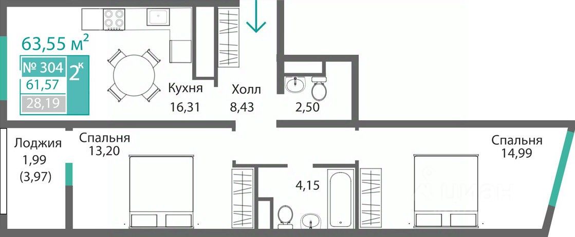 57 м² · Этаж 9 из 9