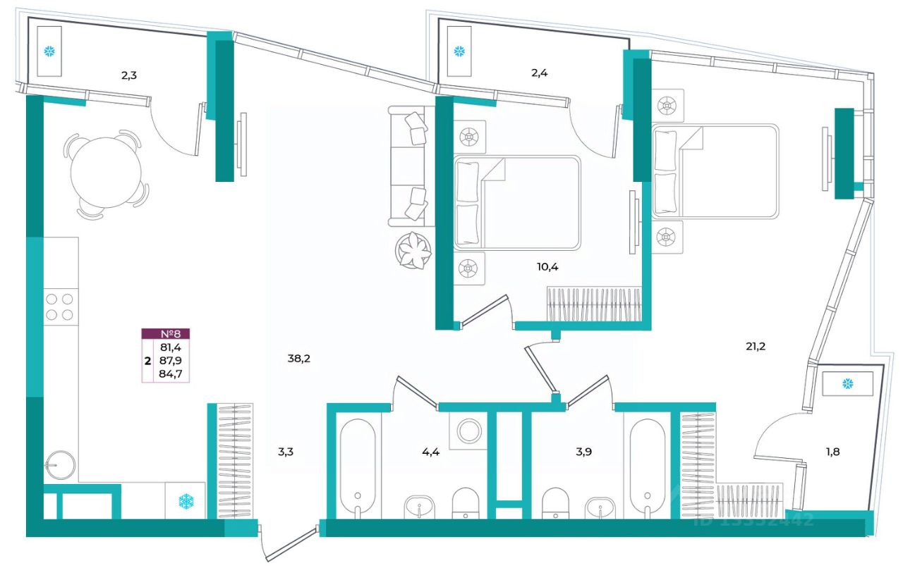 Продаётся 2-комнатная квартира в строящемся доме (Этап 1), срок сдачи: I-кв. 2028, общей площадью 58.11 кв.м., на 8 этаже. Новый жилой комплекс от ГК ''Монолит'' по адресу: Республика Крым, Симферополь, улица Святителя Гурия