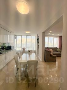 Просторная, светлая, теплая двухкомнатная квартира, перепланированная в студию евро-трешку, находится на пятом этаже, южная сторона с видом во двор и на море, 12-ти этажного каркасно-монолитного двух-подъездного жилого дома клубного типа, 2012 года постройки с закрытой охраняемой благоустроенной территорией, по адресу: г. Евпатория, ул. Интернациональная, 130. Дом расположен в современном деловом центре города Евпатория. (Район ''Универсам''). В шаговой доступности: рынок, торговый центр, ТЦ ''ПУД'', ТЦ ''О'Фреш'', ТЦ ''Эльдорадо'', школа 16, строится детсад, парк ''Красная горка'', озеро Мойнаки. В ухоженном озелененном подъезде два лифта, на входе установлен домофон с управлением через мобильный телефон. На каждом этаже балкон общего пользования. Общая площадь квартиры: согласно выписки ЕГРН: 90,90 кв.м., по техпаспорту: 94,90 кв.м.. В квартире свободной планировки (после строителей) никто не жил, в 2021 году впервые начаты и в 2022 году завершены работы по отделке и оборудованию квартиры современными качественными отделочными материалами, выполнена перепланировка, в результате чего фактическая площадь квартиры составила: 103 кв.м, в том числе: прихожая 15,7 кв.м, гостиная кухня 45,37 кв.м, мастер-спальня 14,68 кв.м, гостевая спальня-кабинет 14,33 кв.м, ванная комната 7,7 кв.м, туалет 3,35 кв.м, техническое помещение (котельная) 1,93 кв.м. Высота потолков 3,7 м. Наружное витражное остекление (''французский балкон''), выполнено пяти-камерным металлопластиковым профилем, двухкамерным стеклопакетом с мультифункциональным напылением на наружном стекле, в гостиной-кухне (6,2 м х 2,56 м) и в мастер-спальне (1,77 м х 2,25 м), что обеспечивает великолепный вид из гостиной и спальни и прекрасную инсоляцию всей квартиры, надежную теплоизоляцию. Квартира полностью по всему периметру утеплена и звукоизолирована, что обеспечивает комфортное проживание с минимизированными счетами за потребленную электроэнергию, в квартире установлено новое, современное и экономичное оборудование: трехфазное электроснабжение высокой степени надежности и защиты (основной трех-фазный электро-щит на 31 автомата и электро-щит в технической комнате на 2 автомата), современное светодиодное освещение всех помещений, в котельной установлены: трех-фазный электрический водогрейный котел Proterm 12 RT/ 14 RU, UA (Словакия), водонагреватель (бойлер) косвенного нагрева Gorenje 120 л, Словения, система водоподготовки и водоочистки. Отопление квартиры построено на основе системы водяного теплого пола: в прихожей, гостиной-кухне, санузлах, а также на биметаллических радиаторах отопления в мастер-спальне и гостевой спальне (кабинете). Кондиционирование воздуха (обогрев и охлаждение) на основе оборудования TOSOT: 2 сплит системы по 07 в спальнях и кондиционер на 18 в гостиной-кухне, принудительная вентиляция в санузлах и кухне. Гостиная-кухня оборудована индивидуально изготовленной встроенной модульной кухней Rehau, (31 шкафа, оборудованных подъемными механизмами Blum и выдвижными механизма
