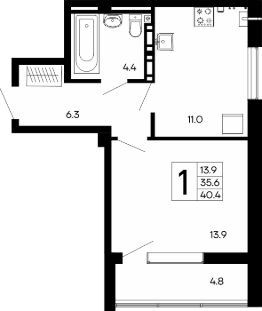 1-к, Симферопольское шоссе, 48 корп. 1 Показать на карте