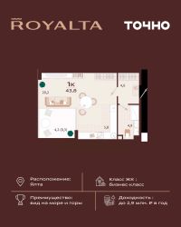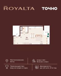 Жилой комплекс ''РОЯЛТА'' включает 5 монолитно-кирпичных девятиэтажных зданий. Проект предлагает квартиры различных планировок: от однокомнатных до трехкомнатных с расширенными балконами и террасами до 13,4 м2. Территория будет благоустроена детскими игровыми и спортивными площадками, гостевой автостоянкой и озеленением, включая газоны, деревья и кустарники. Также появятся современные уличные тренажёры, СПА-комплекс и панорамный инфинити-бассейн. В шаговой доступности находятся центральная набережная Ялты, детские сады, школы, супермаркеты, торговые центры, Ялтинский медицинский колледж, автовокзал и Мордвиновский парк.