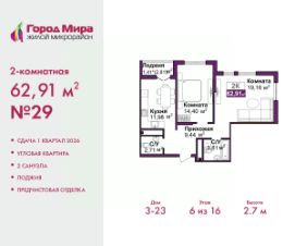 2-комн. квартира с предчистовой отделкой в ЖМ ''Город Мира'' на 6 этаже. Общая площадь: 62.91 кв.м., жилая: 33.56 кв.м., площадь просторной кухни-столовой: 11.98 кв.м. Квартира угловая, идеально подойдет любителям тишины и панорамных видов. В квартире одна лоджия, один совмещенный и один раздельный санузел. Высота потолков 2.7 м. Жилой комплекс ''Город Мира'' комфорт и гармония в современном формате. ''Город Мира'' это масштабный жилой комплекс, созданный для тех, кто ценит комфорт, безопасность и гармонию с природой. Здесь продумана каждая деталь от удобной инфраструктуры до эргономичных планировок квартир. В 2024 году микрорайон ''Город Мира'' победил в номинации ''Лучший экологический проект года в сфере строительства'' по версии премии Crimea Urban Awards. Ключевые преимущества комплекса:- удачное расположение зеленый район с благоприятным микроклиматом- продуманное зонирование жилые кварталы, зоны отдыха и коммерческие объекты- комфорт-класс высокое качество строительства и современные инженерные решения Инфраструктура ''Города Мира'': Образование и досуг:- 2 детских сада (по 260 мест каждый)- планируется строительство общеобразовательной школы- детские и спортивные площадки в каждом дворе- беседки для отдыха, зоны для выгула собак Ритейл и сервис:- магазины, аптеки, медицинские центры- фитнес-клубы, салоны красоты- детские развивающие центры Парковки:- гостевые парковки- наземные и подземные паркинги Квартиры с продуманным комфортом:- просторные планировки с кладовыми и колясочными- лоджии с остеклением- автономное отопление (по 23 дому: индивидуальное отопление)- выполнена стяжка пола (по 3, 4, 20, 21, 22 домам: выполненная стяжка пола и штукатурка стен) - Консьерж-сервис для дополнительного удобства Благоустройство территории:- ландшафтный дизайн с зонами отдыха- современные детские площадки- стильные холлы с дизайнерской отделкой- система видеонаблюдения для безопасности ''Город Мира'' это место, где созданы все условия для комфортной жизни. Выбирайте качество и продуманность в каждой детали! Квартира находится в корпусе 3_23. Дом монолитный, одноподъездный, высотой 16 этажей. В подъезде 1 пассажирский и 1 грузовой лифт. Окончание строительства - 1 квартал 2026 года. Оформление сделки по договору долевого участия. #ZM64lF