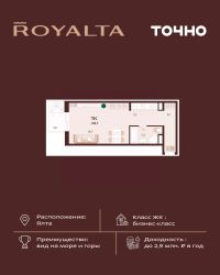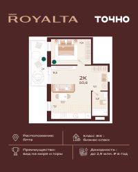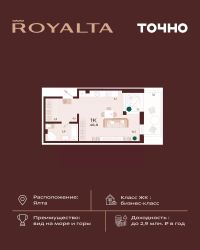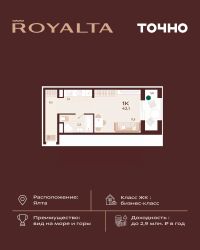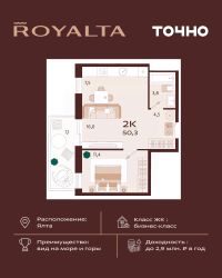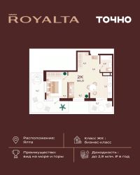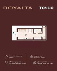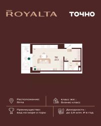 Жилой комплекс ''РОЯЛТА'' включает 5 монолитно-кирпичных девятиэтажных зданий. Проект предлагает квартиры различных планировок: от однокомнатных до трехкомнатных с расширенными балконами и террасами до 13,4 м2. Территория будет благоустроена детскими игровыми и спортивными площадками, гостевой автостоянкой и озеленением, включая газоны, деревья и кустарники. Также появятся современные уличные тренажёры, СПА-комплекс и панорамный инфинити-бассейн. В шаговой доступности находятся центральная набережная Ялты, детские сады, школы, супермаркеты, торговые центры, Ялтинский медицинский колледж, автовокзал и Мордвиновский парк.