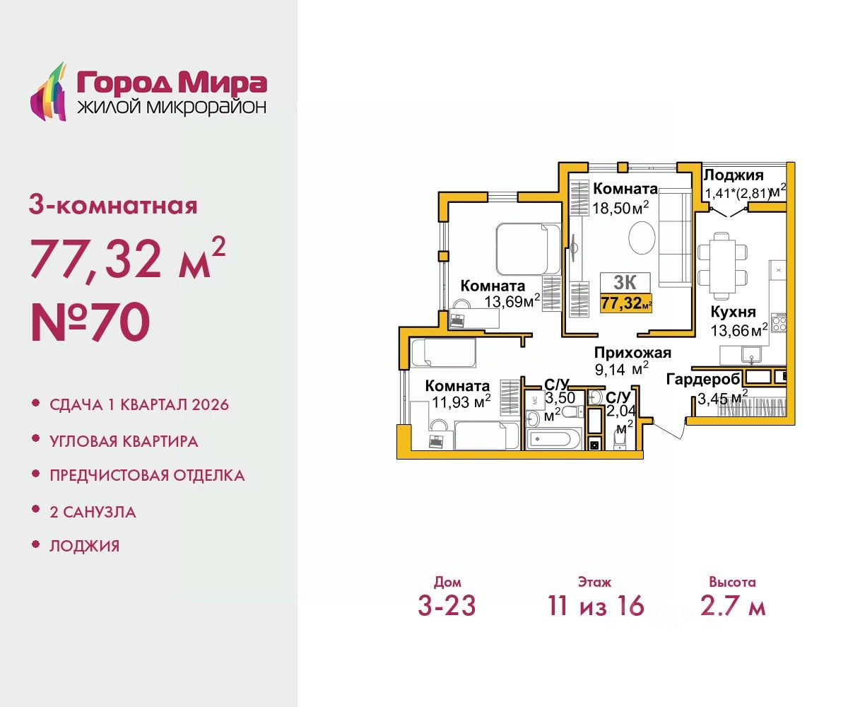 Успейте оформить бронирование по этой цене, предложение ограничено! Стоимость квартиры указана со скидкой, ваша экономия составит 385,000 руб. Информация по телефону, наши менеджеры вам все расскажут. 3-комн. квартира с предчистовой отделкой в ЖМ ''Город Мира'' на 11 этаже. Общая площадь: 77.32 кв.м., жилая: 44.12 кв.м., площадь просторной кухни-столовой: 13.66 кв.м. Квартира угловая, окна oбecпeчивaют paвнoмepнoe ocвeщeниe в тeчeниe дня. В квартире одна лоджия, один совмещенный и один раздельный санузел. Высота потолков 2.7 м. Жилой комплекс ''Город Мира'' комфорт и гармония в современном формате. ''Город Мира'' это масштабный жилой комплекс, созданный для тех, кто ценит комфорт, безопасность и гармонию с природой. Здесь продумана каждая деталь от удобной инфраструктуры до эргономичных планировок квартир. В 2024 году микрорайон ''Город Мира'' победил в номинации ''Лучший экологический проект года в сфере строительства'' по версии премии Crimea Urban Awards. Ключевые преимущества комплекса: - удачное расположение зеленый район с благоприятным микроклиматом - продуманное зонирование жилые кварталы, зоны отдыха и коммерческие объекты - комфорт-класс высокое качество строительства и современные инженерные решения Инфраструктура ''Города Мира'': Образование и досуг: - 2 детских сада (по 260 мест каждый) - планируется строительство общеобразовательной школы - детские и спортивные площадки в каждом дворе - беседки для отдыха, зоны для выгула собак Ритейл и сервис: - магазины, аптеки, медицинские центры - фитнес-клубы, салоны красоты - детские развивающие центры Парковки: - гостевые парковки - наземные и подземные паркинги Квартиры с продуманным комфортом: - просторные планировки с кладовыми и колясочными - лоджии с остеклением - автономное отопление (по 23 дому: индивидуальное отопление) - выполнена стяжка пола (по 3, 4, 20, 21, 22 домам: выполненная стяжка пола и штукатурка стен) - Консьерж-сервис для дополнительного удобства Благоустройство территории: - ландшафтный дизайн с зонами отдыха - современные детские площадки - стильные холлы с дизайнерской отделкой - система видеонаблюдения для безопасности ''Город Мира'' это место, где созданы все условия для комфортной жизни. Выбирайте качество и продуманность в каждой детали! Квартира находится в корпусе 3_23. Дом монолитный, одноподъездный, высотой 16 этажей. В подъезде 1 пассажирский и 1 грузовой лифт. Окончание строительства - 1 квартал 2026 года. Оформление сделки по договору долевого участия. #Z559v5