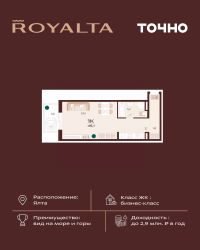 Жилой комплекс ''РОЯЛТА'' включает 5 монолитно-кирпичных девятиэтажных зданий. Проект предлагает квартиры различных планировок: от однокомнатных до трехкомнатных с расширенными балконами и террасами до 13,4 м2. Территория будет благоустроена детскими игровыми и спортивными площадками, гостевой автостоянкой и озеленением, включая газоны, деревья и кустарники. Также появятся современные уличные тренажёры, СПА-комплекс и панорамный инфинити-бассейн. В шаговой доступности находятся центральная набережная Ялты, детские сады, школы, супермаркеты, торговые центры, Ялтинский медицинский колледж, автовокзал и Мордвиновский парк.