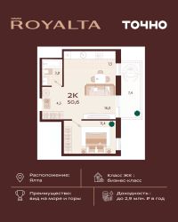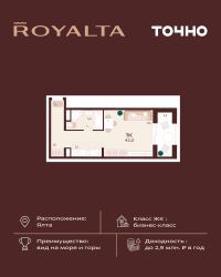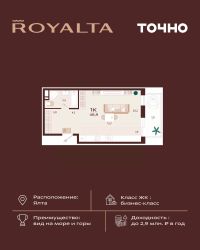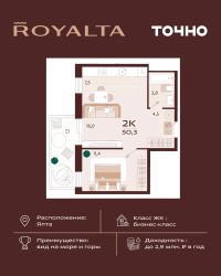 Жилой комплекс ''РОЯЛТА'' включает 5 монолитно-кирпичных девятиэтажных зданий. Проект предлагает квартиры различных планировок: от однокомнатных до трехкомнатных с расширенными балконами и террасами до 13,4 м2. Территория будет благоустроена детскими игровыми и спортивными площадками, гостевой автостоянкой и озеленением, включая газоны, деревья и кустарники. Также появятся современные уличные тренажёры, СПА-комплекс и панорамный инфинити-бассейн. В шаговой доступности находятся центральная набережная Ялты, детские сады, школы, супермаркеты, торговые центры, Ялтинский медицинский колледж, автовокзал и Мордвиновский парк.