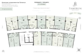 Продаются 2-комнатные апартаменты в строящемся доме (Этап 2 (Секции 1-3)), срок сдачи: II-кв. 2029, общей площадью 71.4 кв.м., на 7 этаже. ''Tamerun'' - морская резиденция на Западном берегу Крыма, между городами Евпатория и Саки. Комплекс апартаментов ''Tamerun'' - альтернатива зарубежным курортам. В солнечной резиденции есть всё для жизни и интересного отдыха: собственный песчаный пляж и теннисный корт, бассейны с морской водой, рестораны и летнее кафе, зона СПА и фитнес-центр, общественно-деловые пространства и подземный паркинг.