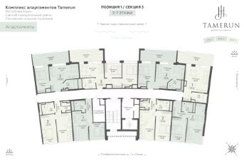Продаются 1-комнатные апартаменты в строящемся доме (Этап 1 (Секции 1-3)), срок сдачи: IV-кв. 2028, общей площадью 46.4 кв.м., на 5 этаже. ''Tamerun'' - морская резиденция на Западном берегу Крыма, между городами Евпатория и Саки. Комплекс апартаментов ''Tamerun'' - альтернатива зарубежным курортам. В солнечной резиденции есть всё для жизни и интересного отдыха: собственный песчаный пляж и теннисный корт, бассейны с морской водой, рестораны и летнее кафе, зона СПА и фитнес-центр, общественно-деловые пространства и подземный паркинг.