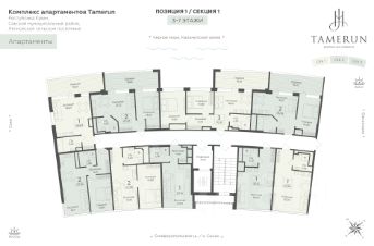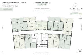 Продаются 3-комнатные апартаменты в строящемся доме (Этап 1 (Секции 1-3)), срок сдачи: IV-кв. 2028, общей площадью 67.64 кв.м., на 10 этаже. ''Tamerun'' - морская резиденция на Западном берегу Крыма, между городами Евпатория и Саки. Комплекс апартаментов ''Tamerun'' - альтернатива зарубежным курортам. В солнечной резиденции есть всё для жизни и интересного отдыха: собственный песчаный пляж и теннисный корт, бассейны с морской водой, рестораны и летнее кафе, зона СПА и фитнес-центр, общественно-деловые пространства и подземный паркинг.