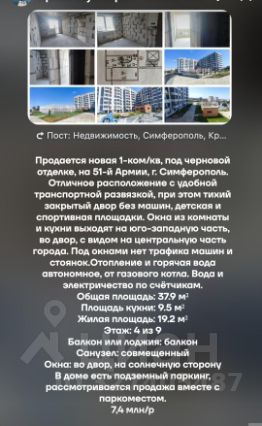 Продаётся 1-комнатная квартира в строящемся доме (Дом 2), срок сдачи: II-кв. 2026, общей площадью 45.3 кв.м., на 15 этаже. ЖК Поэма - это территория вдохновения и творческих идейЗдесь Вы ощутите внутреннюю свободу, простор для новых планов и реализации возможностей, став автором своей собственной поэмы.Объект комфорт-класса великолепно расположен в центре Симферополя на улице Трубаченко. Два монолитно-каркасных дома возводятся в сдержанном, изысканном стиле, сочетая в себе эстетику и надёжность.Большие площади остекления подчёркивают современную архитектуру здания. Собственная крышная котельная и актуальные технические решения обеспечат будущим собственникам исключительный комфорт.Территория дома благоустроена по самым актуальным стандартам:закрытый дворвидеодомофоны с функцией распознавания лицпомещение для размещения консьерж-сервиса, который позаботится о комфорте, безопасности проживающих, уюте и чистотеландшафтное озеленение с редкими видами растений и системой автополивадетская площадка с инновационным оборудованиемсовременный воркаут и зона для занятий йогойlounge - зона с гамакамихоллы с ремонтом по индивидуальному дизайнерскому проектуместа для стоянки велосипедов и колясок (во дворе)система видеонаблюдениявыделенная зона для парковки транспортных средств площадью более 2200 кв. м. с возможностью выезда на ул. Трубаченко и ул. Крымских Партизан.В жилом комплексе Поэма Вы сможете наслаждаться потрясающими видами на город, живописными рассветами и незабываемыми закатами прямо из окна своей квартиры.Локация объекта привлекает также и развитой инфраструктурой. Это район с транспортной доступностью по всем направлениям. Поблизости расположены супермаркеты, торговые центры, банки, детские сады и школы, спортивный клуб, аптеки, химчистка, кафе и рестораны.В нескольких минутах ходьбы парк им. Шевченко - один из старейших в Симферополе. Это любимое место отдыха для многих поколений, где приятно проводить время в гармонии с природой.Жилой комплекс Поэма - свободный ритм, достижимая высота.