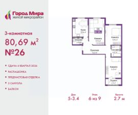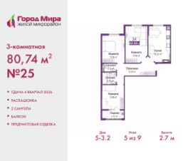 Продается 1-комн. квартира от застройщика с предчистовой отделкой в ЖМ ''Город Мира'' на 5 этаже. Общая площадь: 40.73 кв.м., жилая: 9.92 кв.м., площадь просторной кухни-столовой: 17.54 кв.м. Все окна выходят на одну сторону. В квартире один балкон, один совмещенный санузел. Высота потолков 2.7 м. Квартиры в ЖК ''Город Мира'' ваш комфорт начинается здесь! ''Город Мира'' это масштабный жилой комплекс, созданный для тех, кто ценит комфорт, безопасность и гармонию с природой. Здесь продумана каждая деталь: от удобной инфраструктуры до эргономичных планировок квартир. В 2024 году микрорайон ''Город Мира'' победил в номинации ''Лучший экологический проект года в сфере строительства'' по версии премии Crimea Urban Awards. Почему выбирают наш комплекс: - Зеленый оазис живите среди природы в черте города.- Всё под рукой 2 детских сада, магазины, фитнес, медицина. - Безопасность: закрытая территория с видеонаблюдением. Наши квартиры: - Просторные планировки с кладовыми. - лоджии с остеклением.- Автономное отопление: платите только за реальное потребление. - Предчистовая отделка, включает стяжку пола, без штукатурки стен. - Консьерж-сервис и подземный паркинг. Инфраструктура комплекса: - Детские и спортивные площадки. - Зоны отдыха с беседками. - Фитнес-клубы и салоны красоты. - Будущая школа на территории, уже функционируют два детских сада. Выгодные условия покупки: - Ипотека от 5,5%, военная ипотека от 5,5%. - Рассрочка. - Материнский капитал на первоначальный взнос. Квартира находится в корпусе 5_3.2. Дом монолитный, одноподъездный, высотой 9 этажей. В подъезде 1 грузовой лифт. Окончание строительства - 4 квартал 2026 года. Оформление сделки по договору долевого участия. #zmdOfI