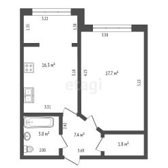 2-к, 60 лет ВЛКСМ, 22а Показать на карте