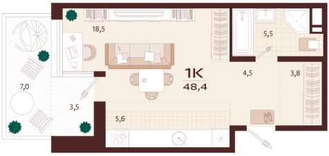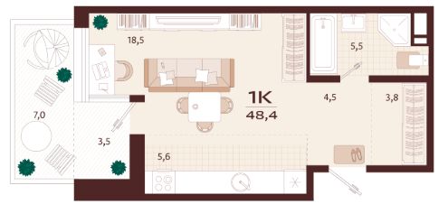 Продаётся 1-комнатная квартира в строящемся доме (Корпус 2), срок сдачи: II-кв. 2027, общей площадью 48.1 кв.м., на 3 этаже. Жилой комплекс бизнес-класса ''РОЯЛТА'' от застройщика ''ГК ТОЧНО'' в городе Ялта Республики Крым на улице Спендиарова.