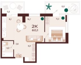 Продаётся 2-комнатная квартира в строящемся доме (Корпус 2), срок сдачи: II-кв. 2027, общей площадью 60.1 кв.м., на 3 этаже. Жилой комплекс бизнес-класса ''РОЯЛТА'' от застройщика ''ГК ТОЧНО'' в городе Ялта Республики Крым на улице Спендиарова.