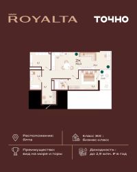 Продаётся 3-комнатная квартира в сданном доме (Щорса, 10В), срок сдачи: III-кв. 2022, общей площадью 71.7 кв.м., на 6 этаже. Дом построен в красивом и живописном районе Ялты в стиле ''модерн''. Дом утопает в зелени парков, которые его окружают. Чистый и свежий воздух вам обеспечен круглый год. Все продумано до мелочей, детская зона с мягким покрытием и обособленным ограждением, скамейки для отдыха, гостевая парковка, видеонаблюдение, это создаст вам чувство комфорта и безопасности. 1-комнатные и 2-комнатные квартиры с предчистовой отделкой White box. Качественные строительные материалы: цементно-песчаная черепица Вrааs (Германия), отделка фасада штукатуркой и краской Тikurillа (Финляндия), натуральный камень травертин на цокольных этажах и входной группе, общественные зоны в декоративной штукатурке и индийском керамограните, художественная ковка балконных ограждений - обеспечат надежность и красоту. Территория дома граничит с известным санаторием ''Киров'', вы в любое время сможете воспользоваться его услугами в лечении и поддержании здоровья и красоты. Он отличается высоким уровнем специализации и предоставленным разнообразием методов лечения. B домe 63 квартиры, это небольшой клубный дoм. Квартиры оборудованы итальянским газовым двухконтурным котлом ''ВАХI'' - предусмотрено индивидуальное отопление, что существенно снижает стоимость содержания квартиры.