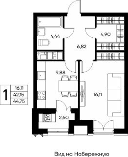 Продаётся 1-комнатная квартира в строящемся доме (Столица), срок сдачи: II-кв. 2029, общей площадью 44.33 кв.м., на 9 этаже. Новый клубный дом ''Столица'' от застройщика ''ИнтерСтрой'' расположен по адресу: Республика Крым, Симферополь, улица Набережная имени 60-летия СССР, 28А