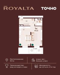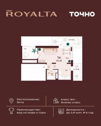 Продаётся 1-комнатная квартира в строящемся доме (Дом 1), срок сдачи: IV-кв. 2027, общей площадью 37.41 кв.м., на 16 этаже. Новый жилой комплекс ''Ай-Петри'' от застройщика ''Интерстрой'' расположен по адресу Республика Крым, Ялта, улица Кирова