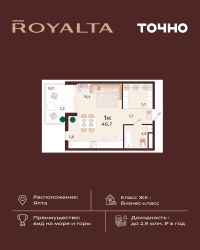 ЖК ''Sky Plaza 5.0'' - это пятая очередь премиального комплекса апартаментов, расположенного на живописном побережье Черного моря. Этот уникальный проект сочетает в себе современные технологии строительства, изысканный дизайн и безупречный комфорт.Здание представляет собой монолитный блок с волнообразным фасадом, который гармонично вписывается в морской пейзаж, создавая ощущение легкости и элегантности.Комплекс состоит из 8 этажей, два из которых отведены под подземные паркинги, а 6 этажей - под роскошные апартаменты площадью от 39 до 192 кв. метров.Ваш новый дом у моря ждет вас! Подарите себе и своим близким возможность жить в окружении красоты, комфорта и роскоши.Панорамное остекление и открытые широкие балконы-террасы с прозрачными стеклянными ограждениями дарят потрясающие виды на море и окружающие пейзажи.Рядом с комплексом находится знаменитый Массандровский парк - настоящий шедевр садово-паркового искусства, где можно насладиться прогулками среди вековых деревьев и живописных аллей.Всего в 15 минутах пешком вас ждет Ялтинская набережная - сердце города, где каждый вечер можно ощутить неповторимую атмосферу крымского променада. А любители морского отдыха оценят близость пляжа.Всего в 80 метрах от дома вас ждет собственный пляж Sky Beach, оборудованный всей необходимой инфраструктурой: бассейны, уютные кафе, рестораны с видом на море и многое другое.В шаговой доступности расположены магазины, аптека, современный тренажерный зал и аквапарк, что делает жизнь здесь максимально удобной и насыщенной.Для владельцев автомобилей предусмотрена двухуровневая подземная парковка. Теперь маршрут от парковочного места до квартиры существенно сокращен, и быстрый спуск на лифте к личному транспортному средству займет не более 5 минут.Для вашего комфорта здесь предусмотрена централизованная система вентиляции и кондиционирования, а также собственная мини-котельная, обеспечивающая тепло и уют в любое время года.Высота потолков в 3 метра создает ощущение простора и свободы.ЖК ''Sky Plaza 5.0'' - это не просто жилье, это стиль жизни, где каждая деталь создана для вашего удовольствия!