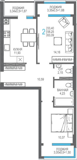 58 м2