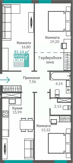 Продаётся 3-комнатная квартира в строящемся доме (С7), срок сдачи: III-кв. 2027, общей площадью 81.14 кв.м., на 2 этаже. Жилой квартал ''Абрикос'' - начало яркой истории жизни в прогрессивном районе Симферополя - Семья городских кварталов ''Крымская Роза''. Вы станете частью комьюнити, где царят принципы удобства, легкости, комфорта, заботы о здоровом образе жизни, добрососедства и открытости. Ваш дом - это место для отдыха, развития, общения и дружбы. Мы спроектировали дворовое пространство квартала так, чтобы каждому члену семьи было весело играть на площадках, спокойно расслабляться под перголой, ставить рекорды в зоне воркаута, узнавать новости от соседей в кофейне возле дома, или устраивать фотосессии с детьми в фактурной тени деревьев. Жилой квартал оживает вместе с вами и готов вместе с вами меняться!