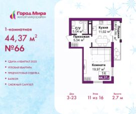1-комн. квартира с предчистовой отделкой в ЖМ ''Город Мира'' на 11 этаже. Общая площадь: 44.37 кв.м., жилая: 19.97 кв.м., площадь просторной кухни-столовой: 11.02 кв.м. Квартира угловая, идеально подойдет любителям тишины и панорамных видов. В квартире один балкон, один совмещенный санузел. Высота потолков 2.7 м. ''Город Мира'' это масштабный жилой комплекс, созданный для тех, кто ценит комфорт, безопасность и гармонию с природой. Здесь продумана каждая деталь от удобной инфраструктуры до эргономичных планировок квартир. Главные преимущества: Удачное расположение зеленый район с благоприятным микроклиматомПродуманное зонирование жилые кварталы, зоны отдыха и коммерческие объектыКомфорт-класс высокое качество строительства и современные инженерные решения Инфраструктура Города Мира: Образование и досуг:2 детских сада (по 260 мест каждый)Планируется строительство общеобразовательной школыДетские и спортивные площадки в каждом двореБеседки для отдыха, зоны для выгула собак Торговля и сервис:Магазины, аптеки, медицинские центрыФитнес-клубы, салоны красотыДетские развивающие центры Парковки:Гостевые парковкиНаземные и подземные паркинги Благоустройство территории:Ландшафтный дизайн с зонами отдыхаСовременные детские площадкиСтильные холлы с дизайнерской отделкойСистема видеонаблюдения для безопасности. Почему именно 23-й дом?Комфорт и планировки:• Просторные квартиры с двумя санузлами и гардеробными• Увеличенная площадь остекления — максимум света и воздуха• Индивидуальное отопление — комфорт в любое время года Эстетика и стиль:• Дизайнерские входные группы — стиль начинается с порога• Архитектурная подсветка фасада — дом, которым хочется гордиться• Панорамные виды на город и сосновый бор рядом Инфраструктура и удобство:• Консьерж-сервис — дополнительный уровень сервиса и безопасности• Колясочные• Выполнена стяжка пола и штукатурка стен• Центральная локация внутри микрорайона — тишина и доступность Жизнь внутри дома:• Двухэтажный стилобат с коммерцией: магазины, кафе, офисы, студии и даже школа танцев• Современный двор: детский игровой комплекс, зоны отдыха для взрослых, зарядка для электромобилей, зона wi-fi на улице Возможно приобретение в ипотеку по выгодным условиям:• ставка — от 6% годовых• первоначальный взнос — от 20%• срок — до 30 лет• можно использовать материнский капитал даже на первый взнос. Также доступны военная и IT-ипотекаРассрочка от застройщика:• первый взнос от 30%,• равномерные платежи до окончания строительства. Квартира находится в корпусе 3_23. Дом монолитный, одноподъездный, высотой 16 этажей. В подъезде 1 пассажирский и 1 грузовой лифт. Окончание строительства - 4 квартал 2025 года. Оформление сделки по договору долевого участия. #2SsgVw
