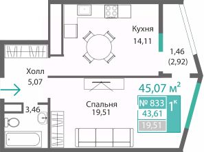 Продаётся 1-комнатная квартира в строящемся доме (Этап 1), срок сдачи: I-кв. 2028, общей площадью 41.51 кв.м., на 9 этаже. Новый жилой комплекс от ГК ''Монолит'' по адресу: Республика Крым, Симферополь, улица Святителя Гурия