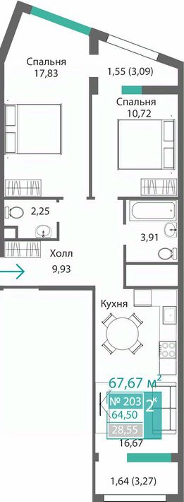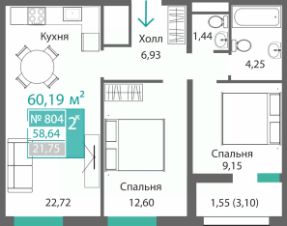 Продаётся 2-комнатная квартира в строящемся доме (Этап 1), срок сдачи: I-кв. 2028, общей площадью 61.27 кв.м., на 2 этаже. Новый жилой комплекс от ГК ''Монолит'' по адресу: Республика Крым, Симферополь, улица Святителя Гурия