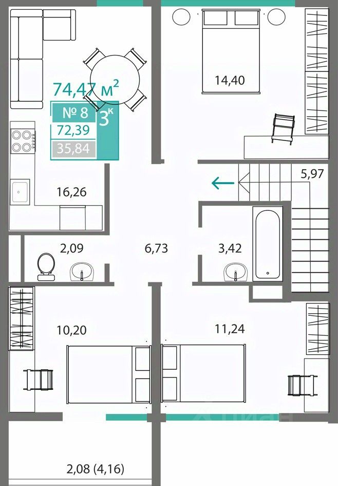 Продаётся 3-комнатная квартира в строящемся доме (Этап 1), срок сдачи: I-кв. 2028, общей площадью 75.02 кв.м., на 9 этаже. Новый жилой комплекс от ГК ''Монолит'' по адресу: Республика Крым, Симферополь, улица Святителя Гурия